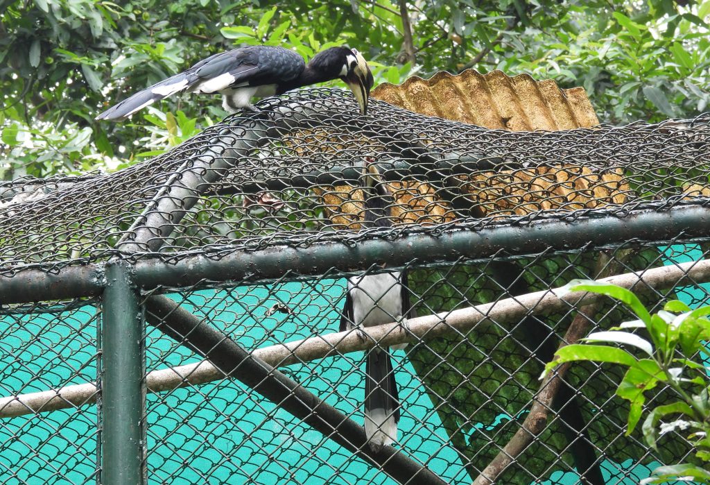 Oriental pied hornbill interaction across the rehabilitation cage | Photograph by Samshul Ali