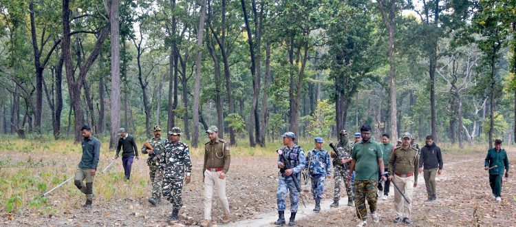 Joint anti-snare walks by members of PRT, Forest Department and WTI in Valmiki Tiger Reserve | Photograph by Madhumay Mallik / WTI