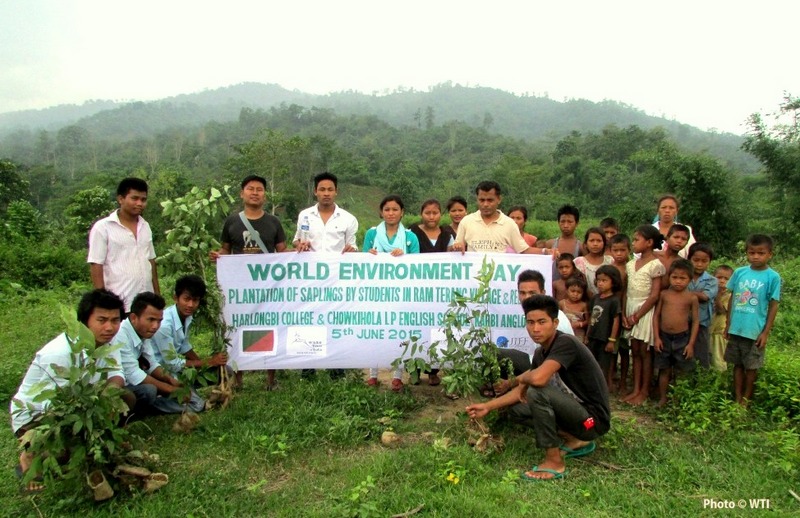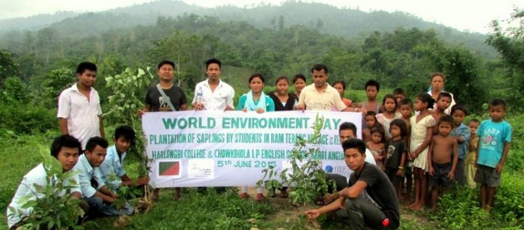 Ram Terang, Assam, June 5, 2015: More than 300 students planted saplings in the Ram Terang village and the site where the village would soon be relocated. The families living in the village voluntarily decided to relocate from Ram Terang Village — located within the Kalapahar-Doigurung (KD) Elephant Corridor — to a site near Sar Kro Village, as part of community-based conservation initiatives undertaken to reduce dependence on the corridor.