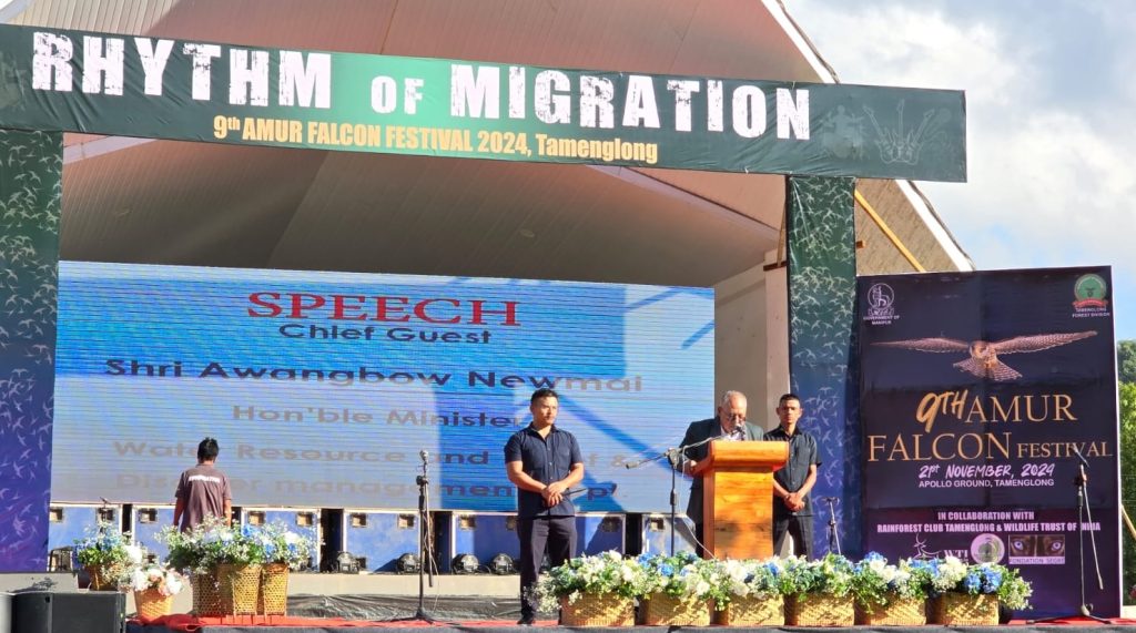 Tamenglong, 21st November 2024: The 9th edition of the Amur Falcon Festival under the theme ‘Rhythm of Migration’ kicked off in Tamenglong, Manipur, celebrating the annual migration of this small raptor bird on November 21, 2024. The festival hosted at Mini Stadium, Apollo Ground, aimed to raise awareness about the protection and conservation of this remarkable species while highlighting the crucial role of the Amur falcon in the local community’s ecosystem.