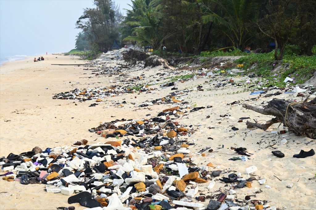 Shoreline plastic debris at Kodi beach; Photo by Aditya