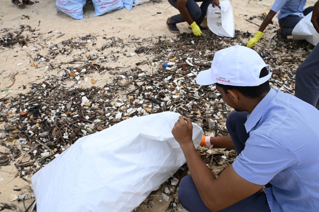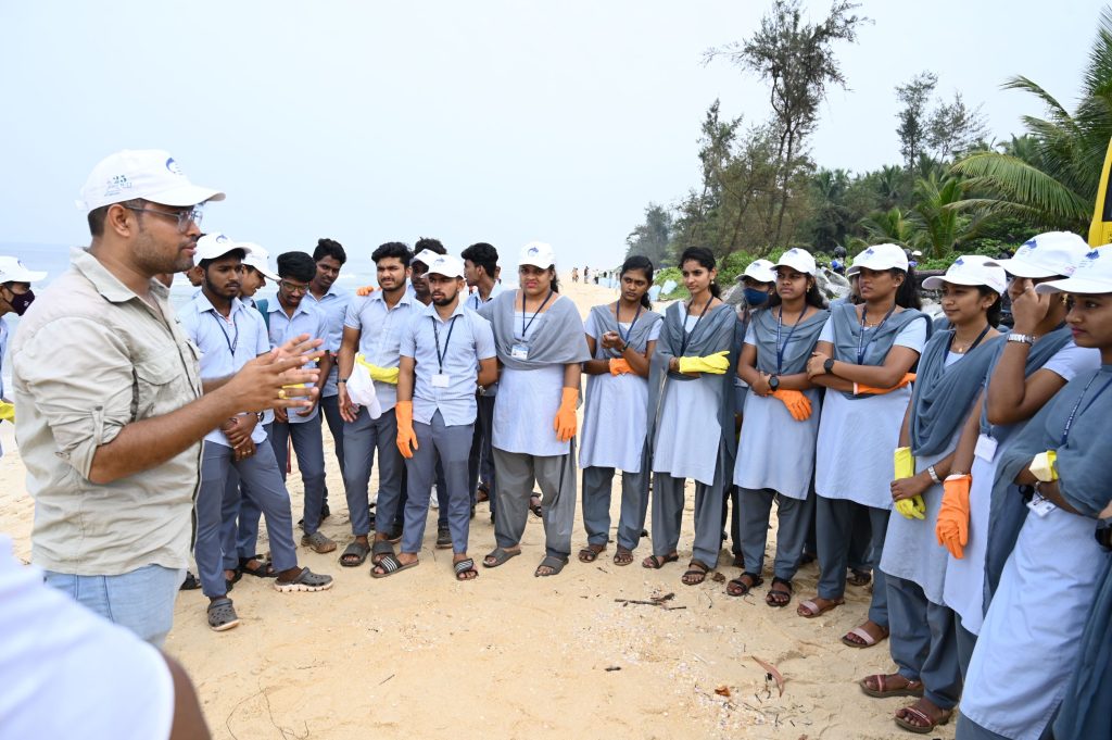 Students cleaning the shoreline plastic debris at Kodi beach; Photo by: Aditya