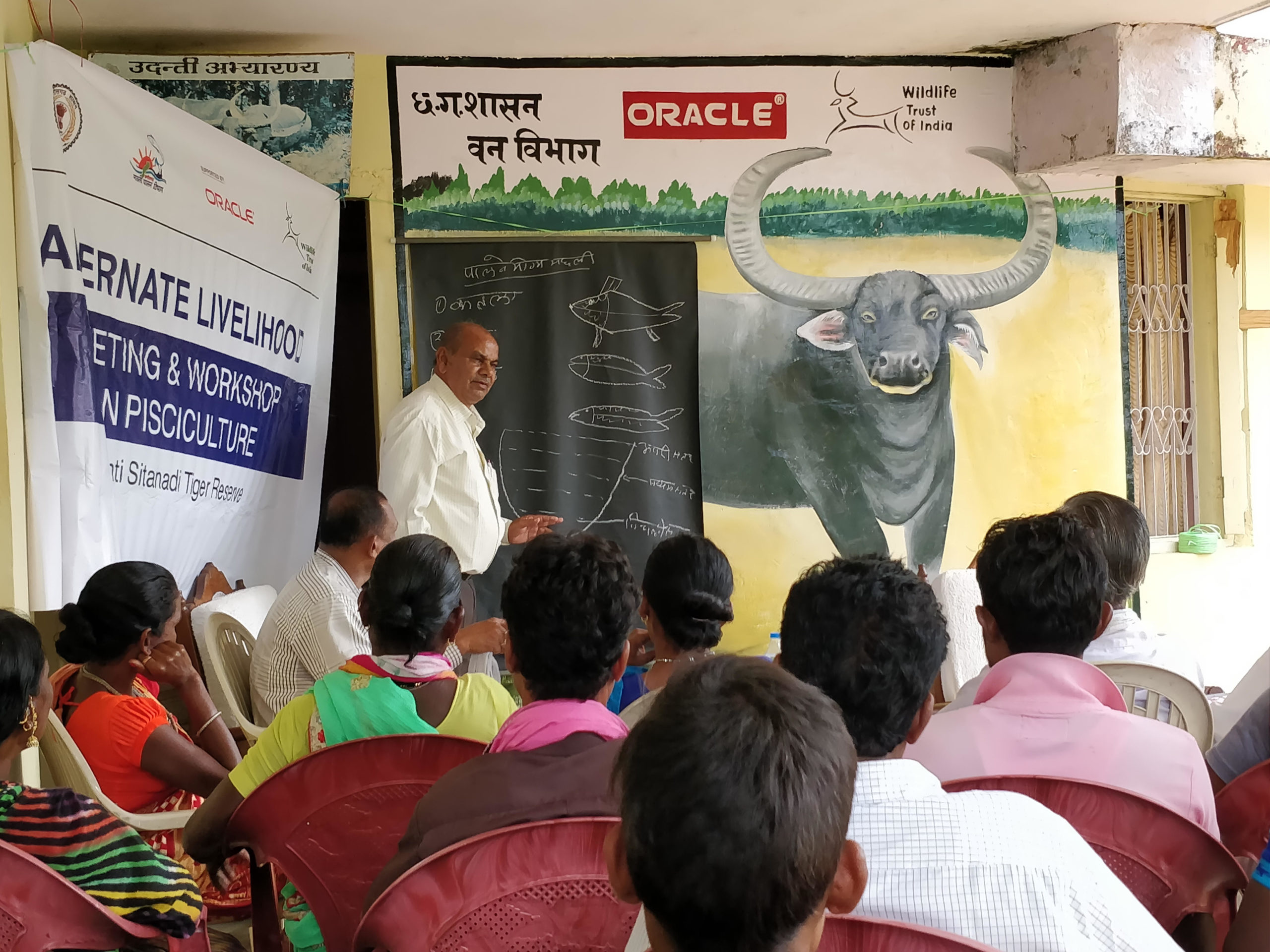 In the most recent steps towards the same, pisciculture training was organized for 30 villagers from two villages in USTR, viz, Jugaad and Deojhar Amli. The villagers were taught about the best practices for maximum production and profitability by representatives of the State Fishery Department. WTI had identified the two villages based on several factors including population, availability of ponds and proximity of Wild Buffalo Habitat among others. The ponds selected will give an extra income to the villagers through an established committee for the same reason. Not only that, but the pisciculture will keep the villagers engaged during non-crop seasons to lower their dependence on the forest.