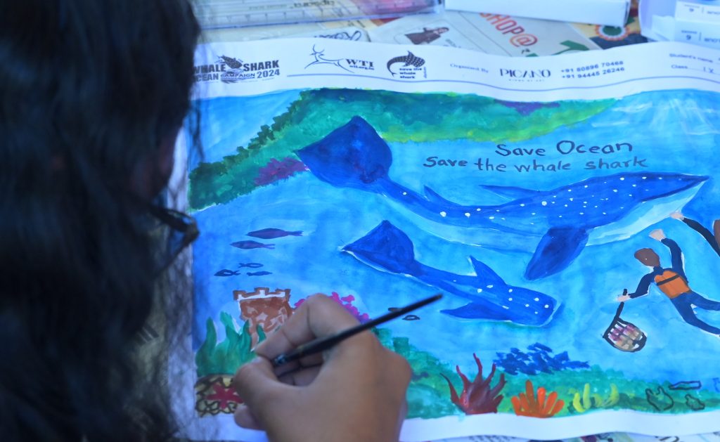Partnering with the Wildlife Trust of India (WTI), the Fisheries Department, Fishers Associations, VST Industries Limited, and VMware the “Save the Whale Shark” campaign focused on engaging fishing communities to address accidental entanglement issues. Sensitisation workshops played a pivotal role in altering the attitudes and behaviours of local fishers. These workshops became crucial platforms to communicate the ecological significance of whale sharks, stressing their role in maintaining marine biodiversity and the interconnectedness of the ecosystem. By involving the community in decision-making processes, the campaign aimed to foster a sense of shared responsibility, ensuring that conservation efforts were collaborative initiatives rather than external impositions. To extend the campaign’s reach beyond coastal communities, public awareness events were organised in urban areas.