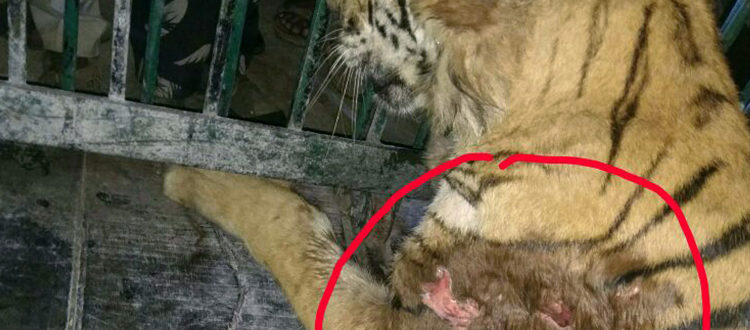 The tiger was transported to Mysore Zoo where it was examined by a team of veterinarians. It was an adult female, possibly in its prime, with puncture wounds on the left fore-shoulder and the ventral aspect of the left thigh. The left eyeball was also found to be injured. Overall, it was in an extremely debilitated state and had possibly gotten injured in a territorial fight with another tiger. It is currently in the Mysore Zoo and will be treated and monitored for the next few days.