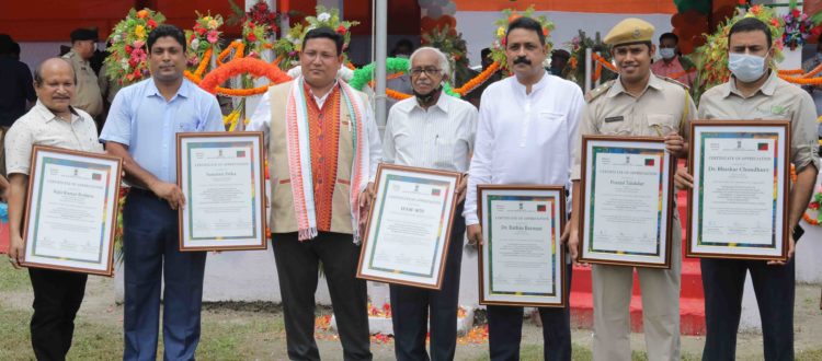 15 August 2021, Kokrajhar: On the occasion of the 75th year of Indian independence, the Bodoland Territorial Council (BTC) organized a felicitation ceremony to recognise all individuals and organizations that have played a role in the region’s development. At a special event, Hon’ble Chief Executive Member of Bodoland Territorial Council, Shri Pramod Boro awarded certificates of appreciation to WTI and its partner IFAW for their long-term commitment and impactful work towards Bringing Back Manas to its former glory. The institutional recognition was formally received by Vice Chair and Trustee WTI, Prof. P C Bhattacharjee. Individual team members from WTI also received a Certificate of Appreciation from the Hon’ble CEM during the special event.