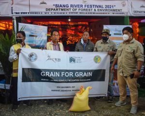 Contributing to the importance of this festival and as a means of relief to communities due to crop damage by elephants in East Siang District, WTI’s Grain to Grain Programme handed out one quintal of rice each for the 38 affected families to the Gaon Burah (headman) of Siluk village, Mr. Ashik Linang. This initiative was undertaken in association with the Zila Parishad Member (ZPM)- Mr. Monggo-Banggo II, Divisional Forest Officer (DFO)-Pasighat, and members of Kotga Gorah Community Conservation Reserve Society.