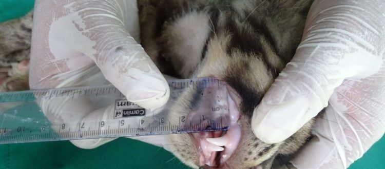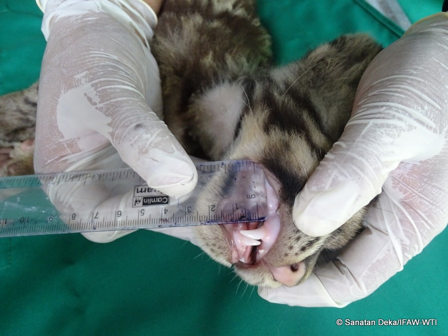 During the health check-up canine teeth of the cub being measured