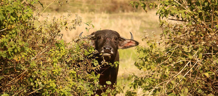 The injured wild buffalo at Hokunguri Tea Estate before it was chemically immobilised by the CWRC MVS team