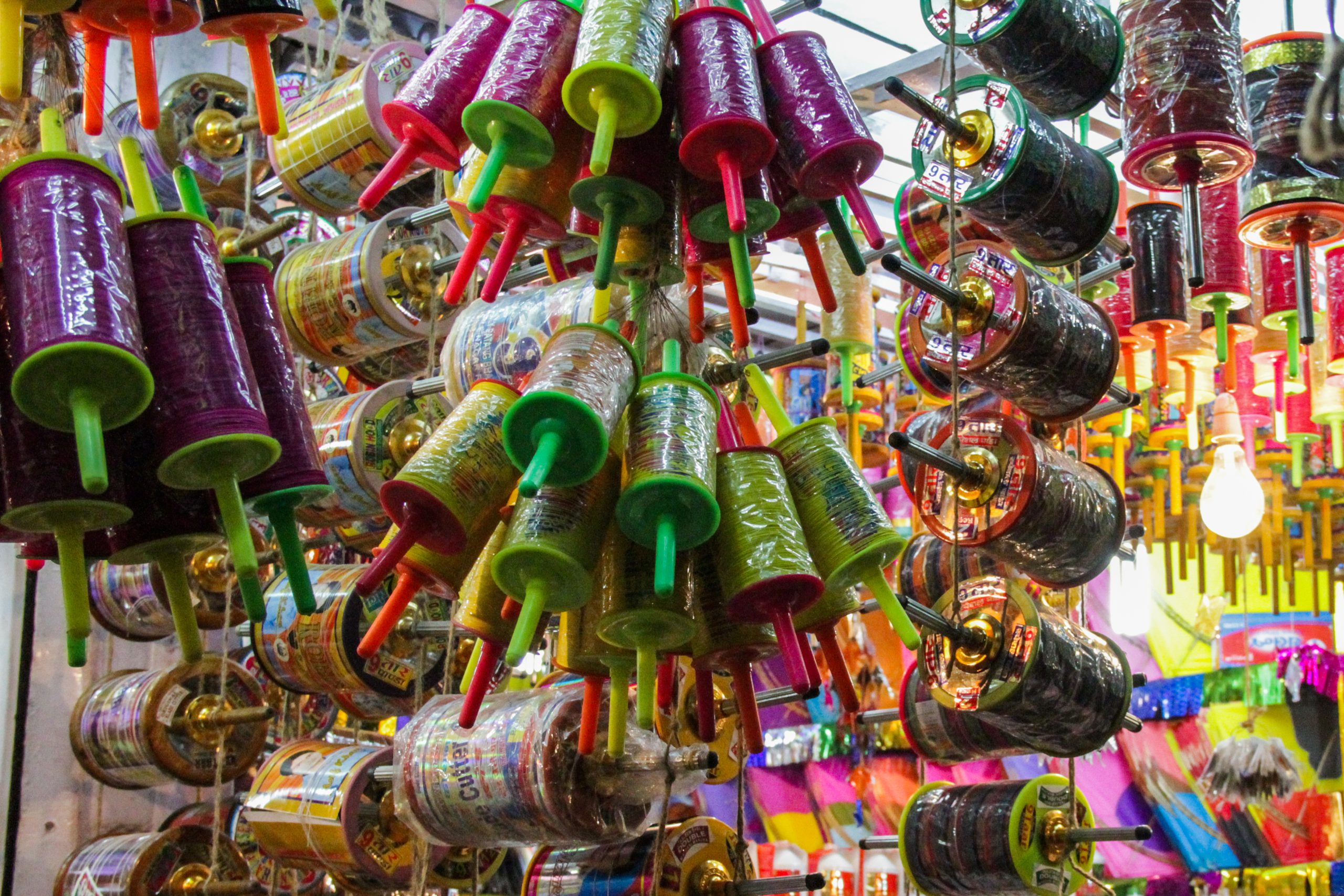 Traditional kite strings used during Makar Sankranti were handmade. Chinese manjhas gradually replaced these as they’re made from monofilament fishing lines and coated with glass. Strong enough to easily cut through traditionally made strings, they became a popular choice for kite flyers.