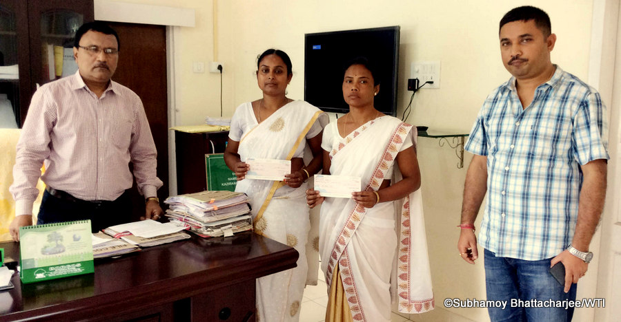 Bokakhat, Assam, May 4, 2016: At a small function held today at the office of the Director, Kaziranga National Park, family members of two deceased forest guards received financial support from the Wildlife Trust of India (WTI), as part of the one-of-a-kind insurance cover it provides to frontline forest staff under its Van Rakshak Project.