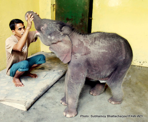 CWRC, September 27, 2015: The Assam Forest Department rescued a week old female elephant calf from Charduar forest range under Sonitpur West Division. The calf was later admitted to the IFAW-WTI run Centre for Wildlife Rehabilitation Centre (CWRC) on September 27, 2015.