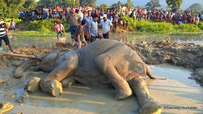 At 10.35am on October 19, I received a call from the Forest Range Officer (FRO) of Chapanala regarding a wild tusker that had collapsed and had been unable to stand up for over 20 hours. The tusker, the FRO said, was lying in a small water body in a paddy field in the village of Amguri, Nagaon.