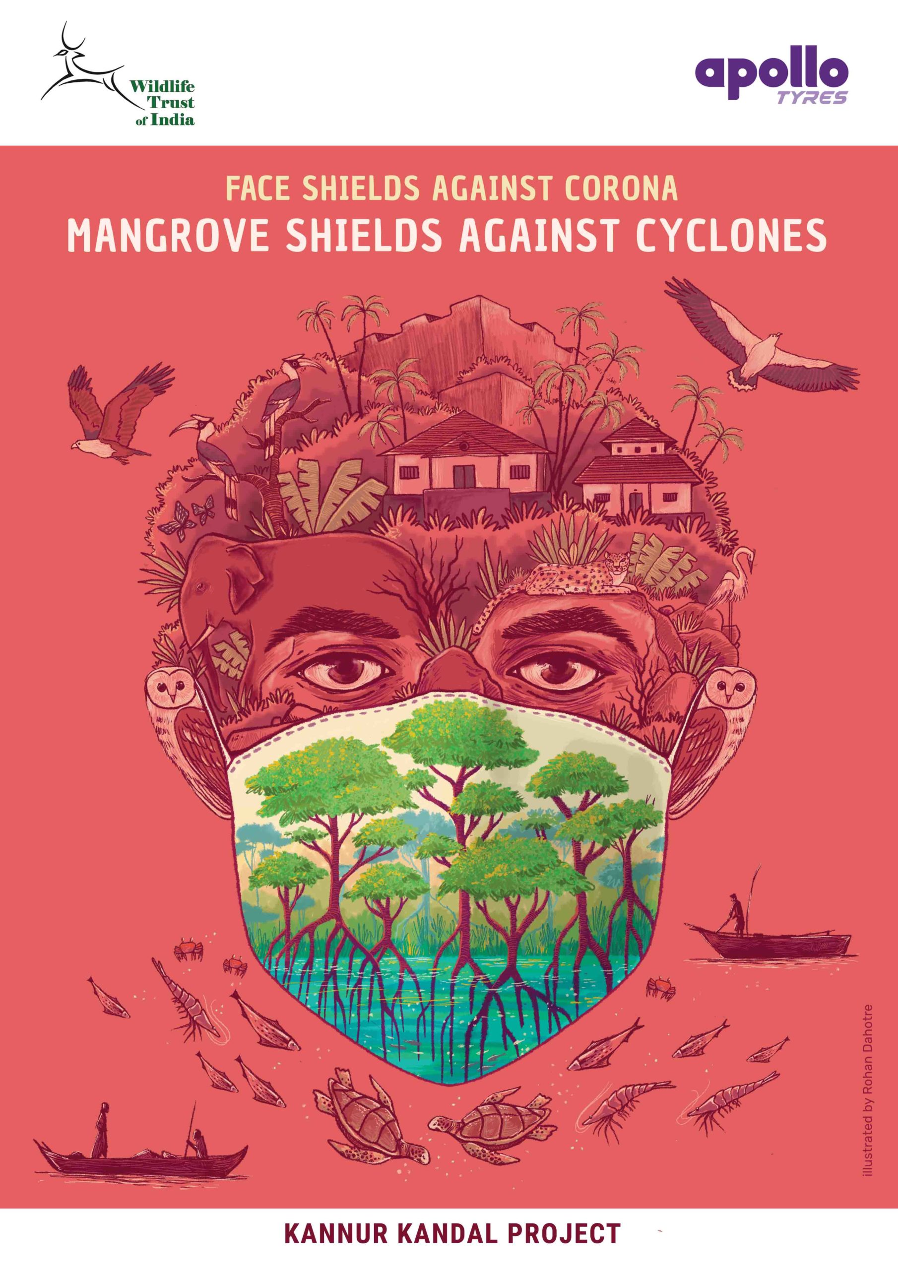 Kannur, 24th July 2020: Embracing the new normal of online events during COVID times, Wildlife Trust of India celebrated International Day for the Conservation of Mangrove Ecosystem with the Kerala Forest Department today by releasing an eye-catching poster commissioned by WTI. The poster illustrates the protection mangroves provide to the land just as a face mask provides to people and carries the tag line ‘Face shields against Corona, Mangrove shields against cyclones’. Pune based wildlife artist, Rohan Dahotre worked on WTI’s concept and created this poster (downloadable link available at the end of this story)