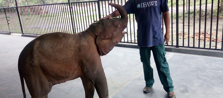 CWRC, Assam, March 27, 2018: A male elephant calf, about five to six months old, was admitted to CWRC (the Centre for Wildlife Rehabilitation and Conservation, IFAW-WTI and the Assam Forest Department’s wildlife rescue, treatment and rehabilitation facility near Kaziranga National Park) on March 23 after it was discovered alone near Lahorijan in the Karbi Anglong district of Assam.