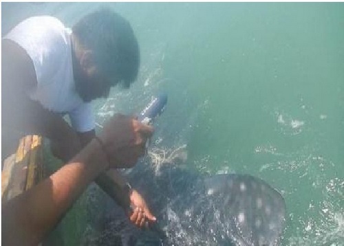 Though the tag did not relay location IDs for the first five days, transmissions started from May 14, 2015. After this, movement was regularly monitored on ARGOS satellite tag monitoring system till May 25, 2015. Five days after deploying the tag, whale shark was located some 150 nm away from the location where it was released.