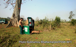 CWRC, Kaziranga, February 24, 2015: Two hog deer were found by villagers on two consecutive days and released back to the wild in Kaziranga National Park by the IFAW- WTI team. Both instances of rescue by locals are heartening proof of the local community taking positive action for conservation.