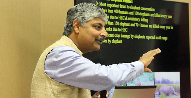 WTI Executive Director & CEO Vivek Menon makes a point during the IUCN Asian Elephant Specialist Group meeting