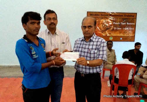 Pench Tiger Reserve, June 25, 2015: As part of International Fund for Animal Welfare-Wildlife Trust of India (IFAW-WTI) Supplemental Accident Insurance Scheme, ex-gratia support of Rs 25,000 was provided to Sanjay Parte (Samiti Labor) in the Karmajhiri Range of Pench Tiger Reserve (Madhya Pradesh). Sanjay Parte was severely injured by a captive elephant at Alikatta circle while he was performing his official duty on April 25, 2015.