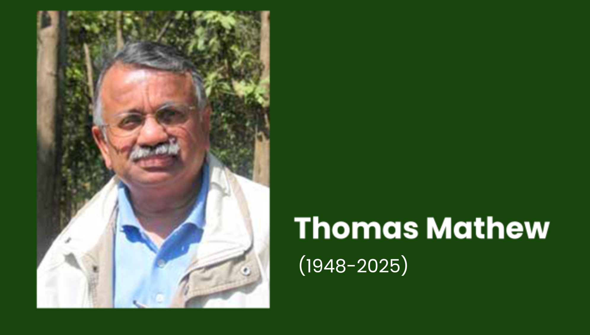 We are deeply saddened to share the news of the passing of Mr. Thomas Mathew, a towering figure in India’s conservation movement, who left us this morning.