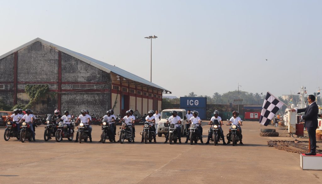 Karwar, 16th January, 2023: To commemorate the 47th Raising Day, Indian Coast Guard organized a rally in collaboration with Wildlife Trust of India (WTI), Royal Enfield, Indian Oil Corporation Ltd (IOCL), NCC and Nehru Yuva Kendra (NYK) on the 16th of January, 2023. Themed on “Save our oceans- Save the whale sharks”, it was a step towards creating awareness for conserving, protecting and restoring the local marine ecosystem.