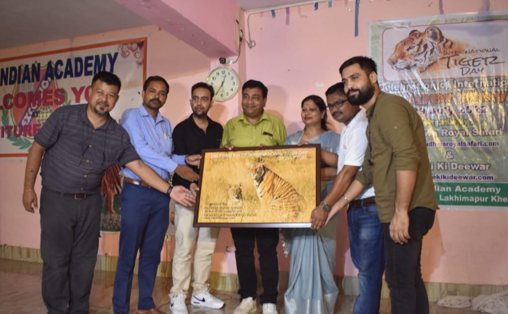 WTI team organized an “Awareness workshop and open quiz competition” at The Indian Academy school where over 160 students and 10 teachers attended this workshop. All the participants were shown a movie on tiger “Kinara” made by IFAW and WTI. We also talked about the tiger’s importance, the threats it faces and conflict-related issues in the landscape. About 30 quiz questions were asked and the winners were awarded by small gifts. DFO North Kheri Mr. Sundaresha, SDM Mr. Avinash, C.O. Police, Mr. Rahul, founder of Royal Dudhwa Safari and other dignities attended the program. Awards were given by Dr. Khanin and DFO Mr. Sundaresha who appreciated WTIs efforts on ground. At the end of the program, WTI team was handed over a memento for the work in the landscape.