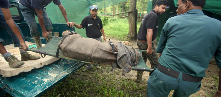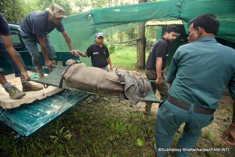 The sudden influx of rescued animals – especially the large number of rhino calves – into CWRC has stretched the centre’s resources to the limit. “The number of animals under our care has risen sharply in the last week”, said Dr Rathin Barman, Deputy Director, WTI and Centre-in-charge. We have had to erect a temporary shelter where two baby elephants are being housed. Two paddocks are also ready to the shift rhino calves into once they become stable. Of course, several of these animals will require long term care once we can look beyond the current situation towards possible rehabilitation into the wild.”