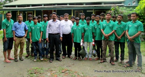 Kaziranga, July 16, 2015: Wildlife Trust of India (WTI) and Elephant Family with support from the Assam Forest Department distributed kits to the newly trained group of Green Corridor Monitors of the Kaziranga -Karbi Anglong landscape. Mr. S K Seal Sarma, Divisional Forest Officer of Kaziranga National Park was invited as the Chief Guest at the kit distribution ceremony and he inspired the young corridor monitors with his guidance.