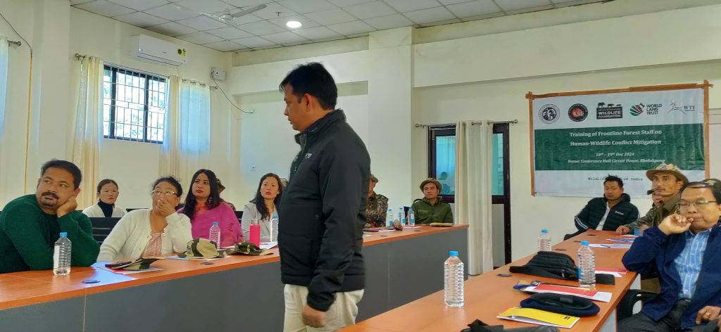 Bhalukpong, Arunachal Pradesh, 20th December 2024: Wildlife Trust of India (WTI) in collaboration with the Department of Environment, Forest & Climate Change, Arunachal Pradesh, and with the support of World Land Trust and David Shepherd Wildlife Foundation conducted a training program on “Human-Wildlife Conflict Mitigation” at the Conference Hall Circuit house in Bhalokpong, West Kameng district.