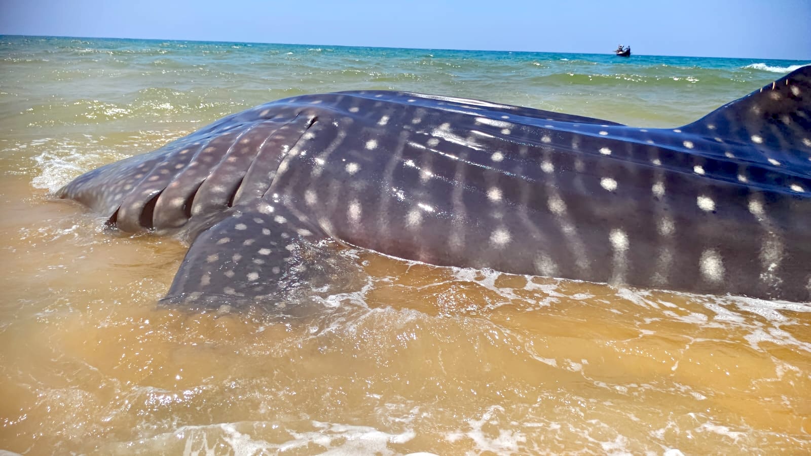 40 fishers stepped in to help return this Whale shark into the sea in Kovalam