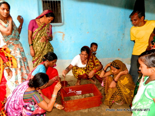 The training was given by Usha Pisde and Chayabai Chanab of Sondlagondi village who are also members of Nagzira SHG. These women were trained previously by WTI on construction of the cook stoves and are now selling them in the market. Forty eight women participated in the training programme that was held under the guidance of IFAW-WTI team.