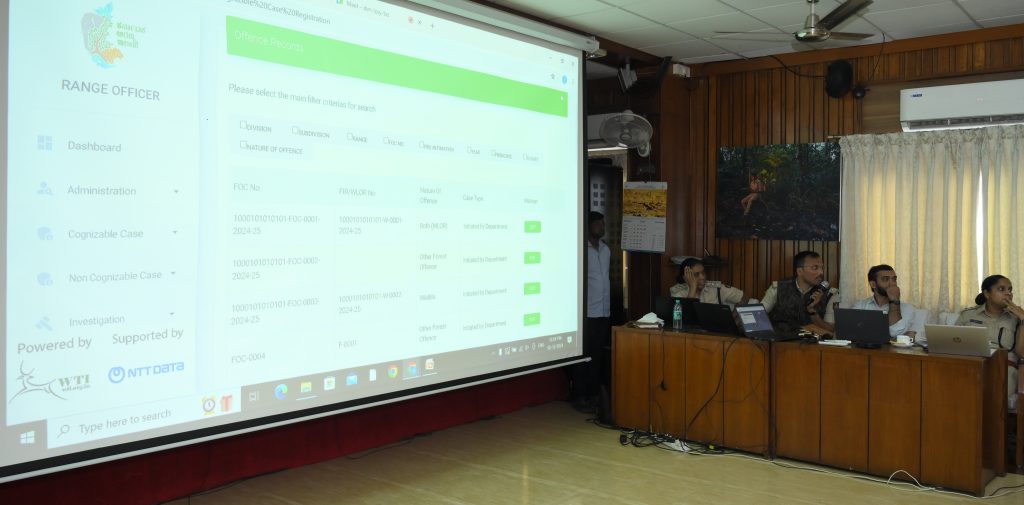 A two-day training program was conducted at Aranya Bhavan, Bangalore, on December 2nd and 4th, 2024, to equip 80 frontline forest staff from the five Forest Divisions selected for the pilot launch of the Case Registration module. The training was jointly organised by the Karnataka Forest Department and the Wildlife Trust of India, with the support of NTT Data. The participating divisions included Bangalore Urban, Bangalore Vigilance, Bhadravati, Sirsi, and MM Hill Wildlife Sanctuary.