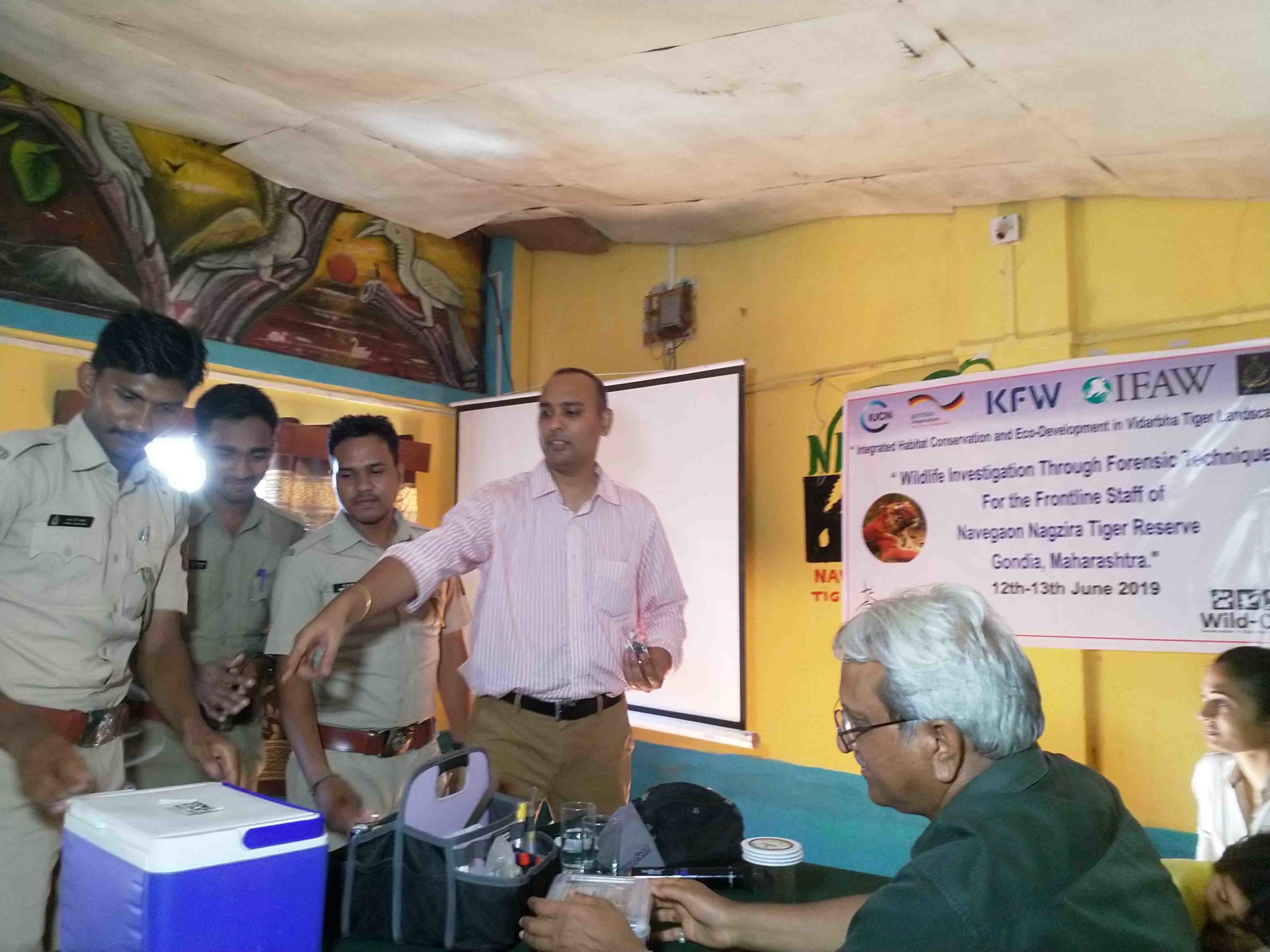 The training briefed on introduction to the forensic study and its scope, collection, preservation for various types of examinations to be done, right packing, labelling and delivery of the samples, scat collection and health monitoring. Demo of sample collection equipment was also given to the participants.
