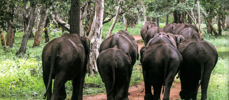 Elephants use a forest path in Nagarhole, which was once under the repeated assault of the infamous bandit Veerapan, who massacred the pachyderms for ivory