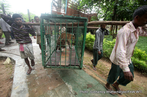 Agartala, June 25, 2015: Two leopards hand-raised at the IFAW-WTI run Centre for Wildlife Rehabilitation and Conservation (CWRC) were shifted to Sipahijala Zoological Park in Tripura for lifetime care on June 25, 2015. The Sipahijala Zoological Park authorities had requested CWRC to handover these leopards for lifetime care. After much deliberation, the decision was made to shift the male and the female leopard to Tripura.