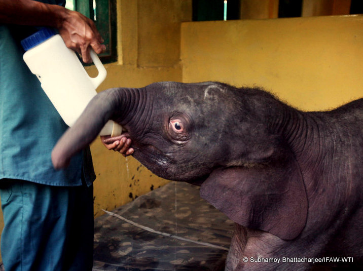 The male elephant calf from Majuli island of Assam admitted to CWRC on 16th October 2015.Photo: Subhamoy Bhattacharjee/IFAW-WTI