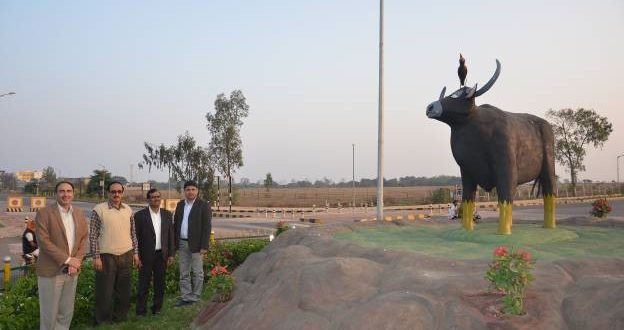 Naya Raipur, Chhattisgarh, Jan 15, 2019 : Naya Raipur (Atal Nagar), in Chhattisgarh gets a new landmark with a life-size bronze sculpture of a wild buffalo mascot for the state. The statue has been placed around green landscaping as the center of a square, to be called the Shyamu-Radhe Chowk henceforth. Close to the Jungle Safari (Nandanvan), the largest zoo safari in Asia and IIIT, the mascot will be a major attraction in the town. The mascot design had been launched in 2017 by the then Chief Minister, Dr Raman Singh in the 10th State Wildlife Board Meeting on 14 November 2017. Today, the mascot, developed and produced by Wildlife Trust of India (WTI), forms the face of the central India wild buffalo recovery campaign running across the state.