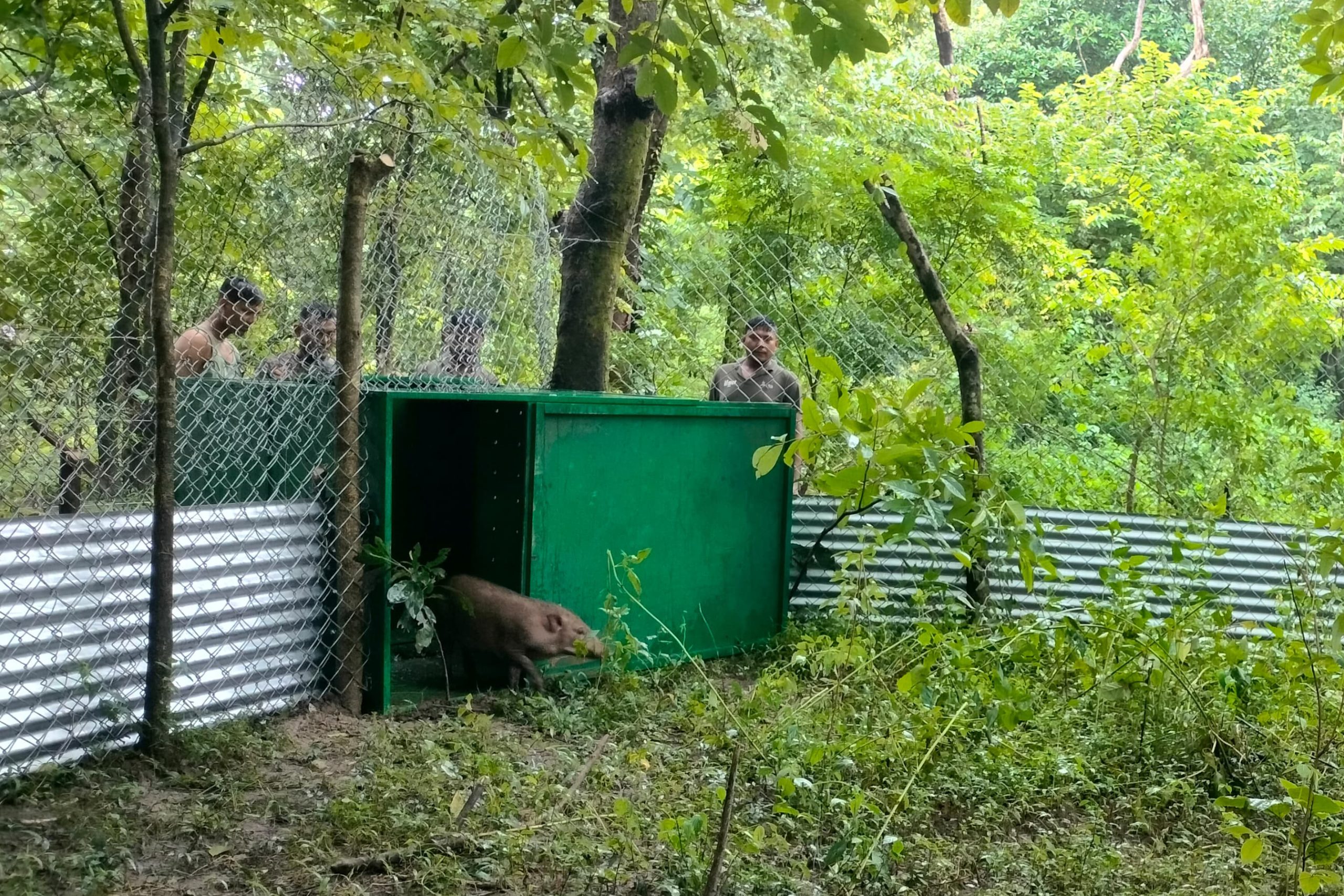 Following the IUCN protocol for wildlife rehabilitation, a soft release method was employed to return the hand-raised piglets to the wild in Raimona National Park. On 8th August 2025, they were relocated to the release site within the Western Range of Raimona NP for soft-release. Before the release, they were screened for African Swine Fever (ASF) using rapid diagnostic kits and fitted with ear tags to facilitate post-release monitoring in the wild.
