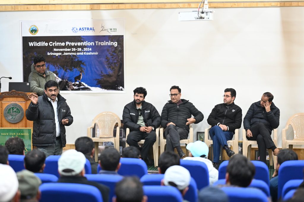 Dachigam, 30th November 2024: Wildlife Trust of India (WTI), in partnership with the Department of Wildlife Protection Jammu & Kashmir, and with support from Astral Foundation and Thin Green Line UK organised a 3-day ‘Wildlife Crime Prevention Training’ from November 26-28 at the Nature Interpretation Centre (NIC) in Dachigam National Park. The training saw active participation from 50 frontline staff from the North, South, Shopian, Central, and Rajouri-Poonch divisions. The primary objective of the workshop was to enhance the knowledge and skills of frontline personnel in combating poaching and illegal wildlife trade in the region.