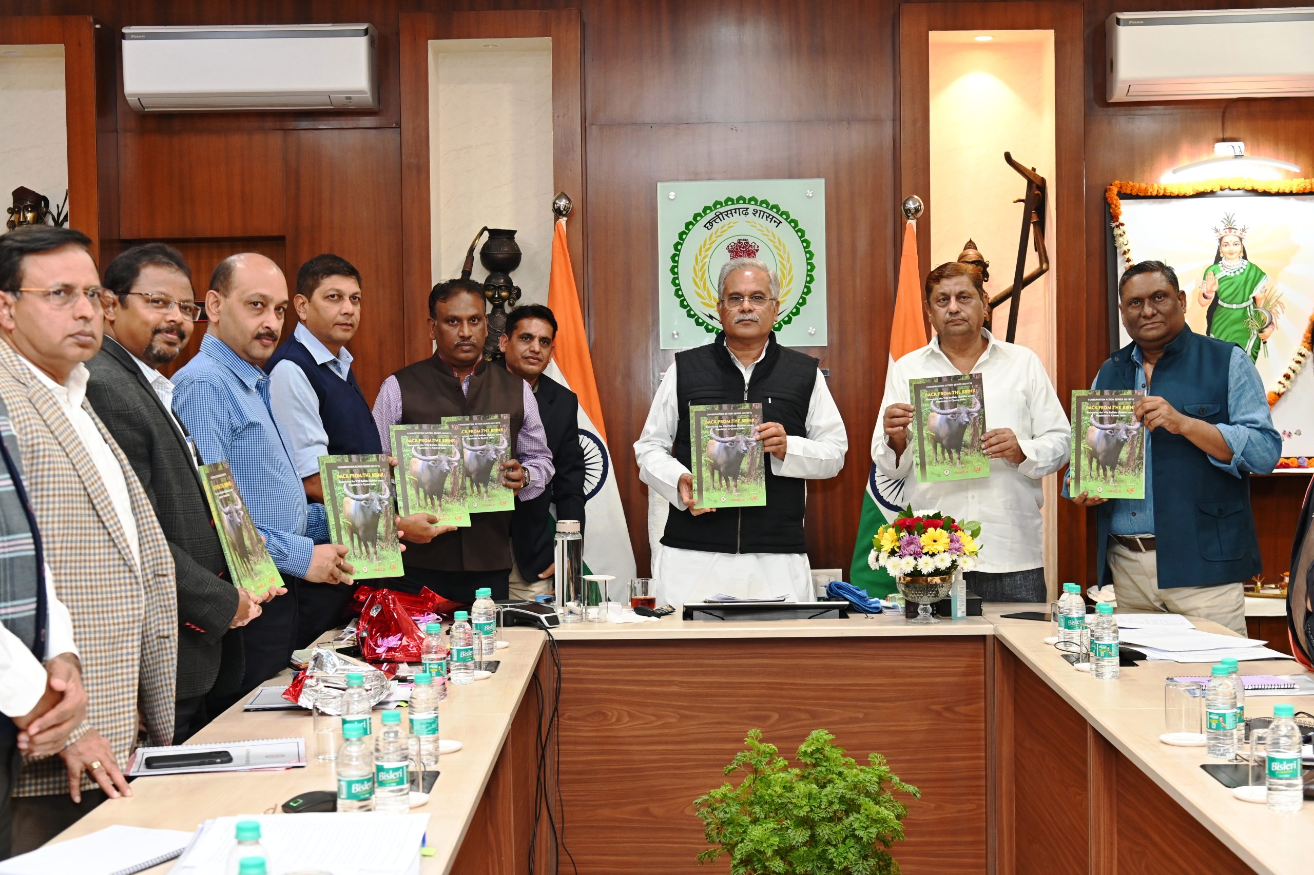 The Conservation Action Report (CAR) on Central India Wild Buffalo Recovery Project was launched at the Chhattisgarh State Wildlife Board meeting by the Honourable Chief Minister of Chhattisgarh, Shri Bhupesh Baghel, along with Forest Minister, Shri Mohammad Akbar.