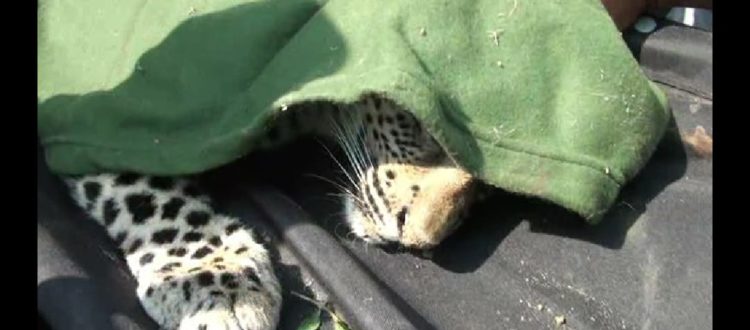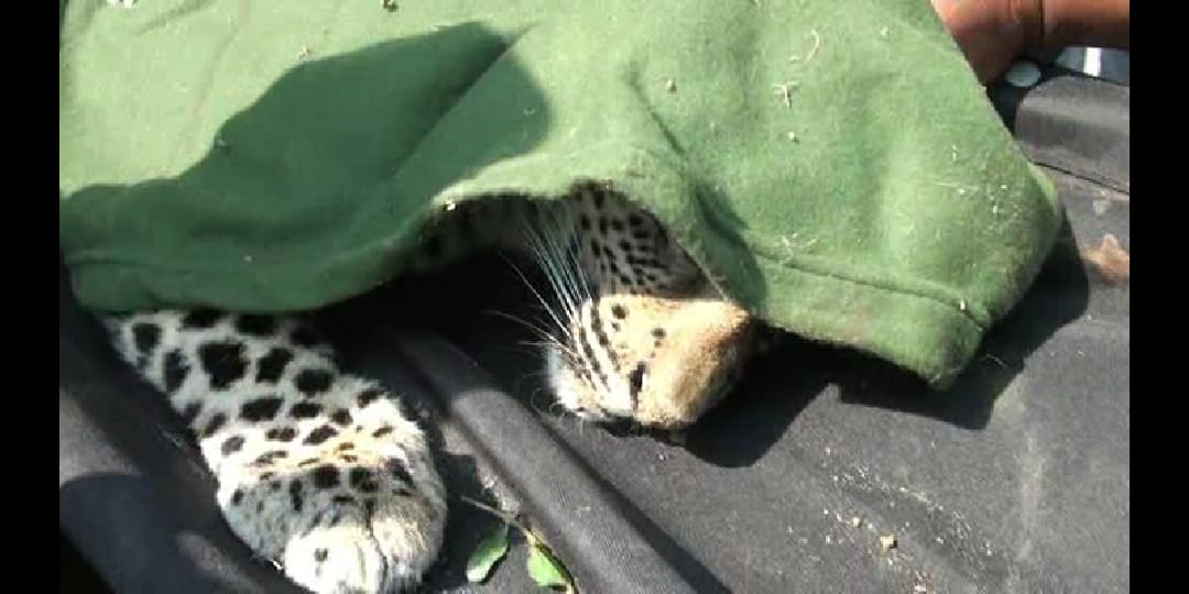 Once sedated, the leopard was gently brought out in the open and examined for injuries by Khanin. It was a young female, about one and half years old. The sedated leopard was then taken to the nearest forest camp office at Jeypore, a distance of 8 km and kept under observation for a few hours after it revived from the sedation.