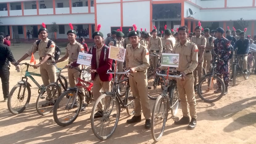Meanwhile, in the state of Uttar Pradesh, our team at the Sarus Crane Conservation Project site organised a bicycle rally to promote wetland and wildlife conservation. 125 NCC Cadets from Ramharsh Intermediate School, located in Nichlaul, Maharajganj participated in the event.
