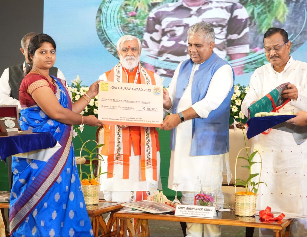 Shri Bhupender Yadav, Hon’ble Minister, EF&CC, Govt. of India presented ‘Gaj Gaurav Awards’ to individuals who contributed to the cause of elephant conservation in the state | Photo by Odisha Forest Department