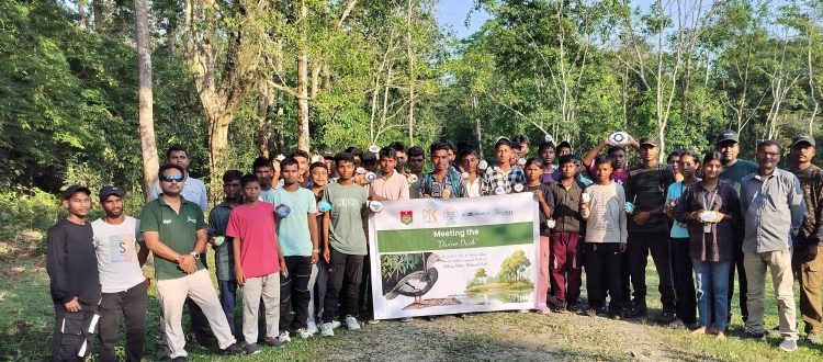 Moving to the northeastern region, our team collaborated with a local NGO, Art for Nature and the Assam Forest Department to host a nature walk and art workshop in the Dehing Patkai National Park in Tinsukia. Participants, including local schoolchildren, youth, and villagers, had the opportunity to learn about Assam’s state bird–the White-winged duck, its habitat and the importance of its conservation.
