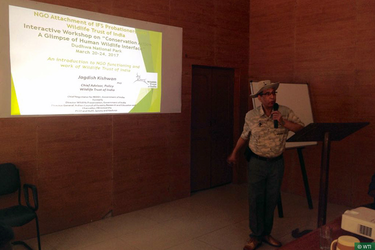 Dr Jagdish Kishwan, WTI’s Chief Policy Advisor conducts a classroom session on the first day of the training workshop