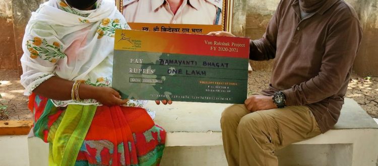 We assisted the wife of Ajit Singh (Sanjay Tiger Reserve, Madhya Pradesh after his unfortunate death by a lightning strike while on duty.