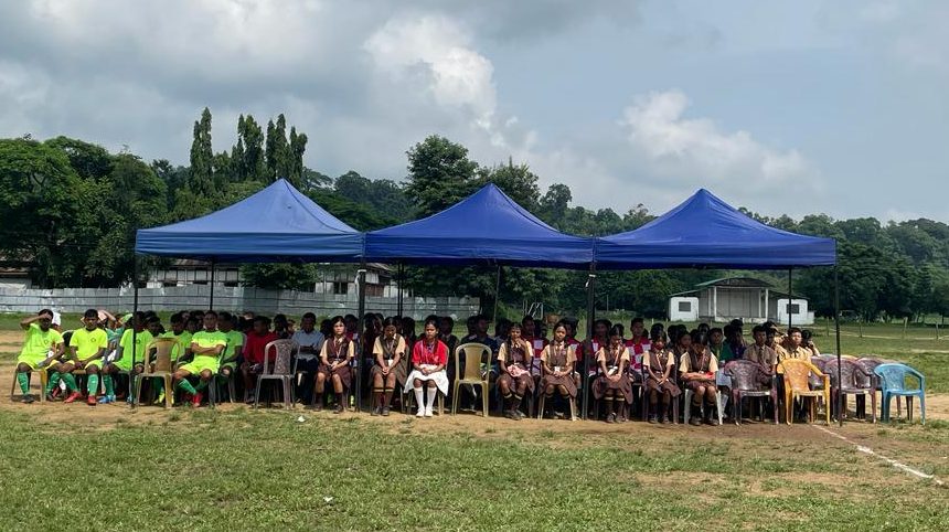 Spectators and school students at the football match organised to raise awareness amongst the youth for elephant conservation | Photograph by Rimachi Leisan
