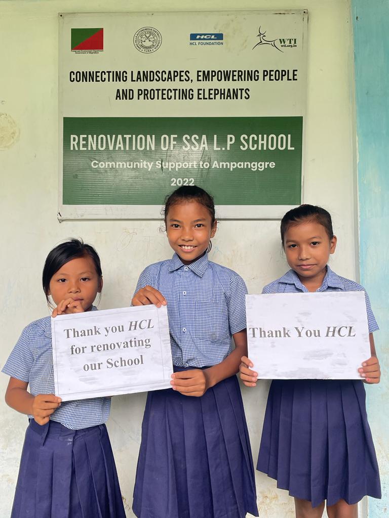 Students thanking HCL Foundation on HCL Day for renovating their school and for all the support being given by them | Photograph by Rimachi Leisan/WTI