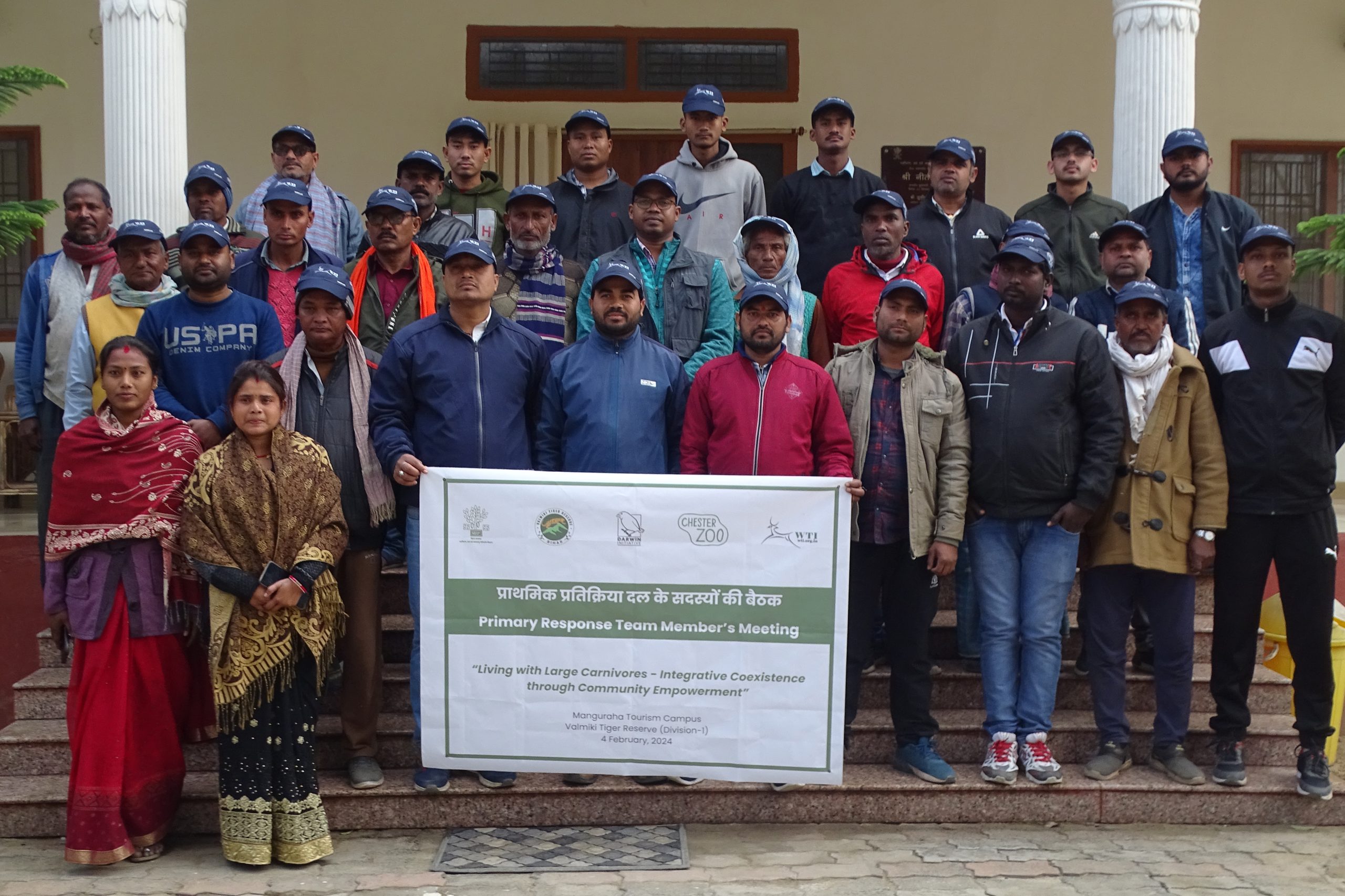 Manguraha, 4th February, 2024: Wildlife Trust of India (WTI), in collaboration with DoEFCC, Govt of Bihar, organised a meeting for the Primary Response Team (PRT) members from local communities surrounding the Valmiki Tiger Reserve in Manguraha Forest Range. PRTs, being the first responders in human-wildlife conflict cases, act as a bridge between the locals and forest department and are consequently crucial to minimize negative interactions in such situations. The meeting was aimed at strategizing proactive measures to reduce the conflict between humans and large carnivores such as tigers and leopards.