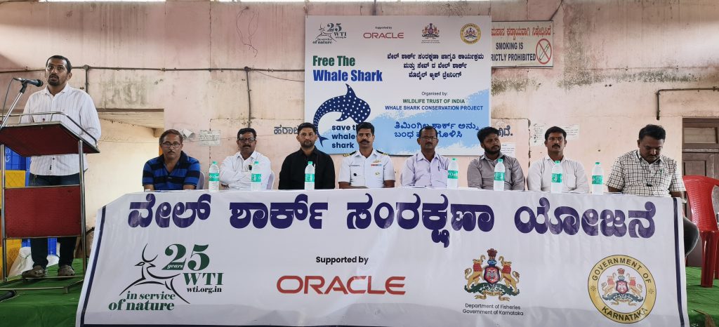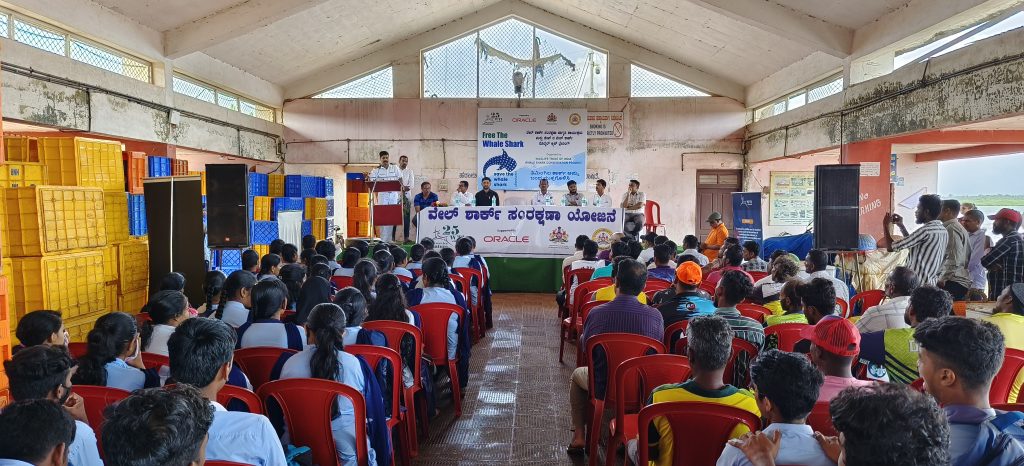 The chief guest of the event, Shri T Manjunath, spoke about the need for these gentle giants and other marine megafauna conservation – “These magnificent creatures play an important part in our ecosystem, and everyone needs to extend their role in protecting them.” He had pledged his alliance and requested fishermen community members and students to the support the cause and actively participate in the Whale shark conservation.